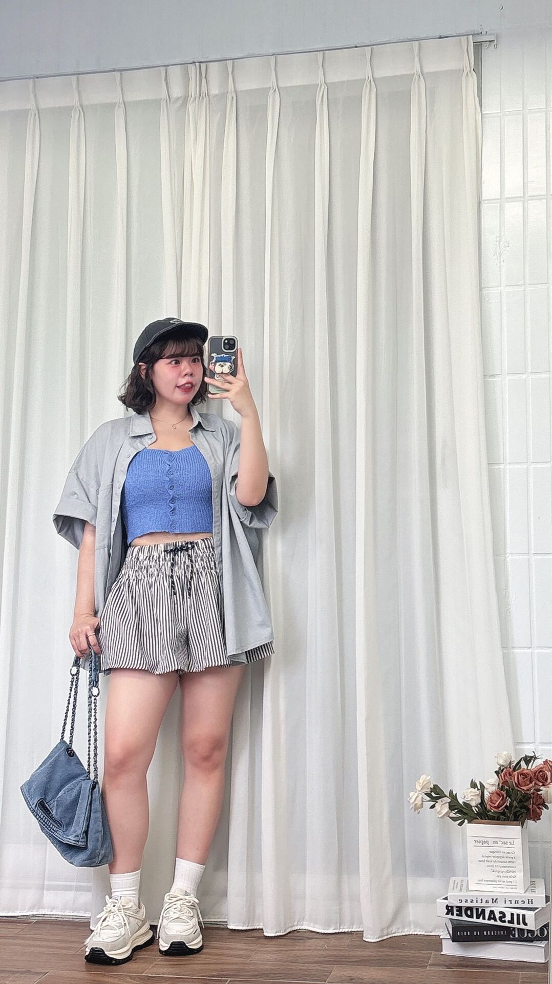 落肩寬鬆剪裁+復古藍色調,