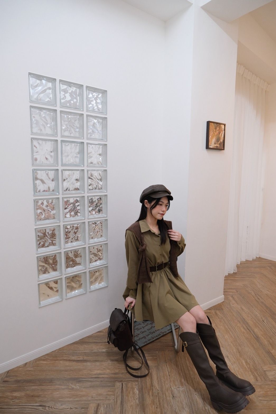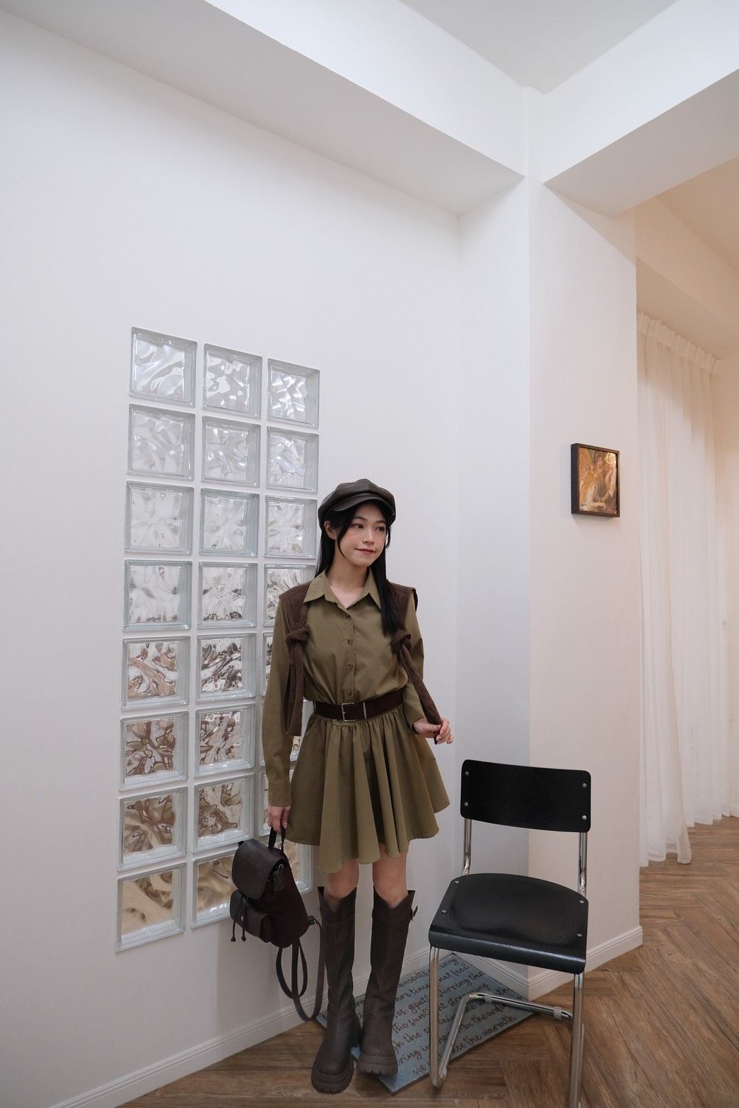 有磅數的蜜桃絨布料 手感柔軟帶霧面質感 俐落的襯衫式設計加上自然收腰曲線 比例瞬間拉~長~