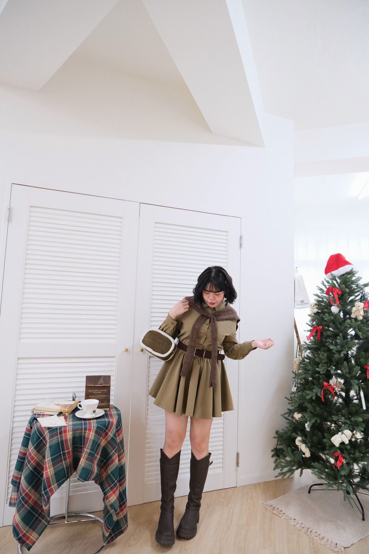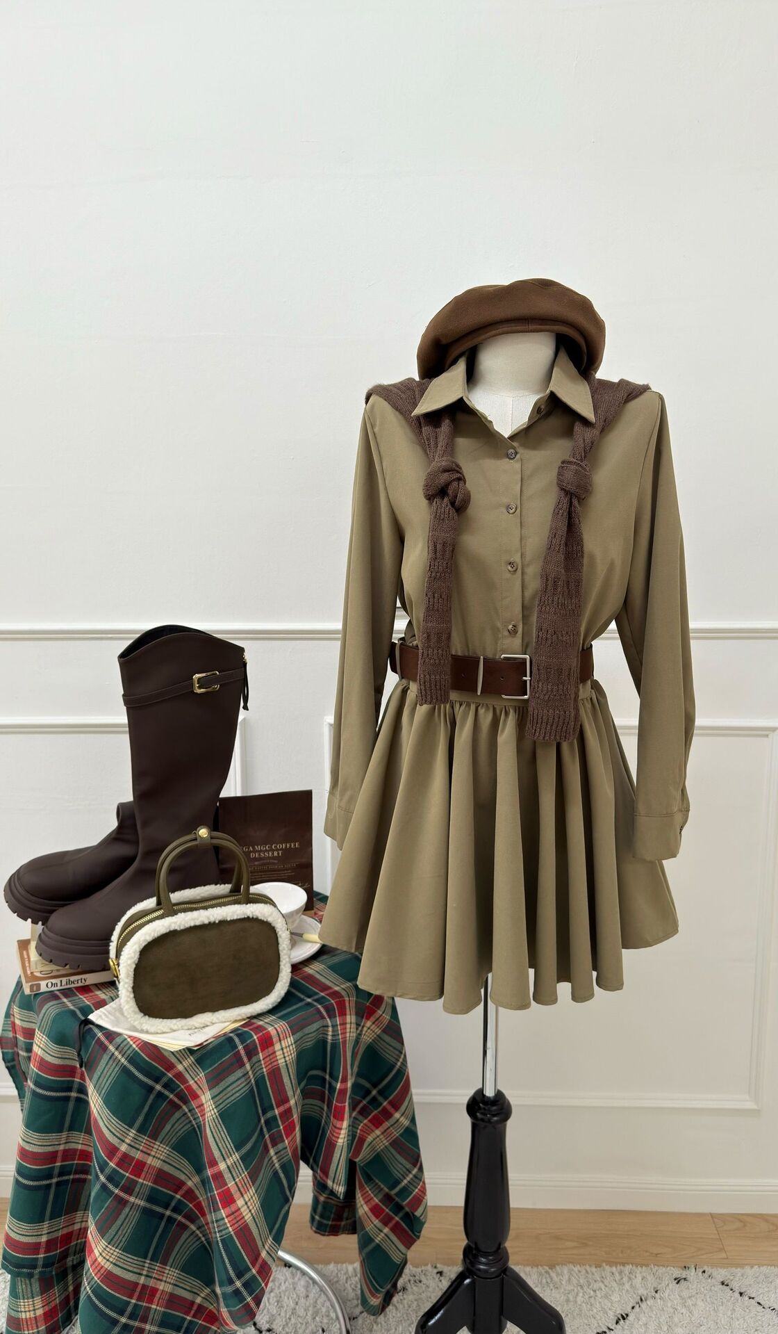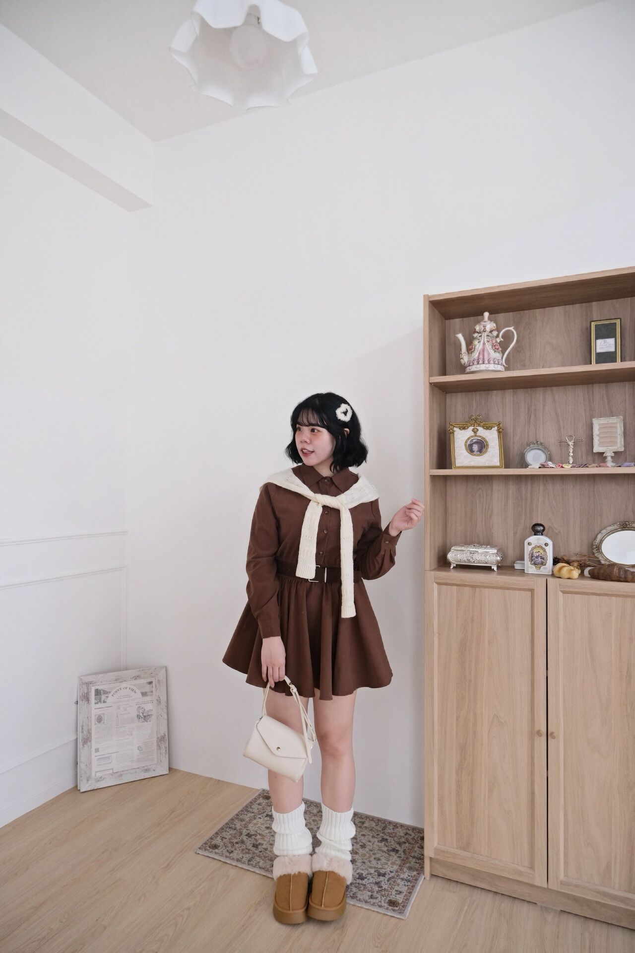 附上同材質蜜桃絨的皮帶 & 柔軟小披肩 穿搭的精緻程度來源於這些加分小單品✨💗