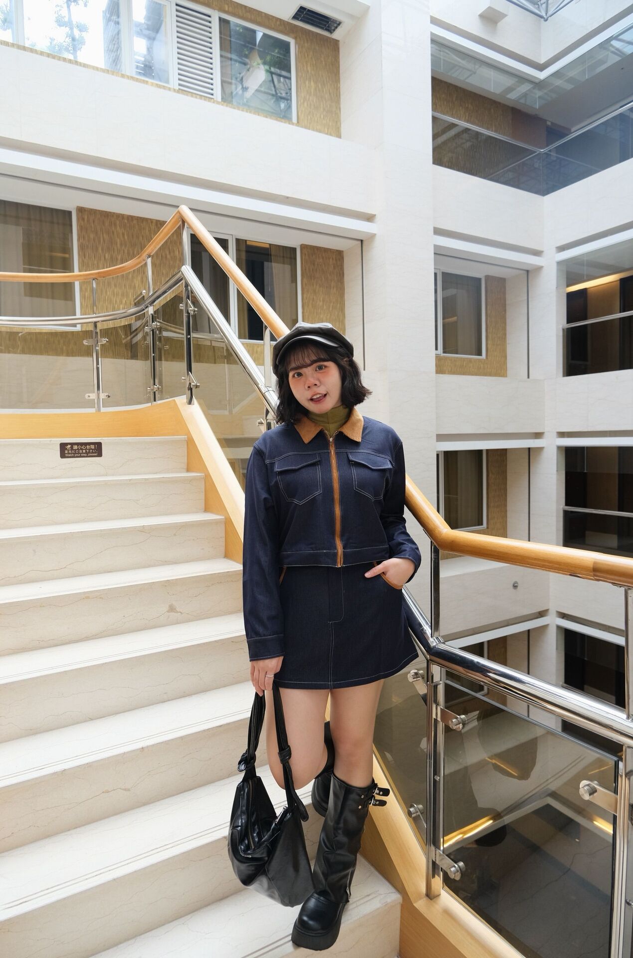 米蘭舊時光 燈芯絨拼接牛仔套組(單一色)