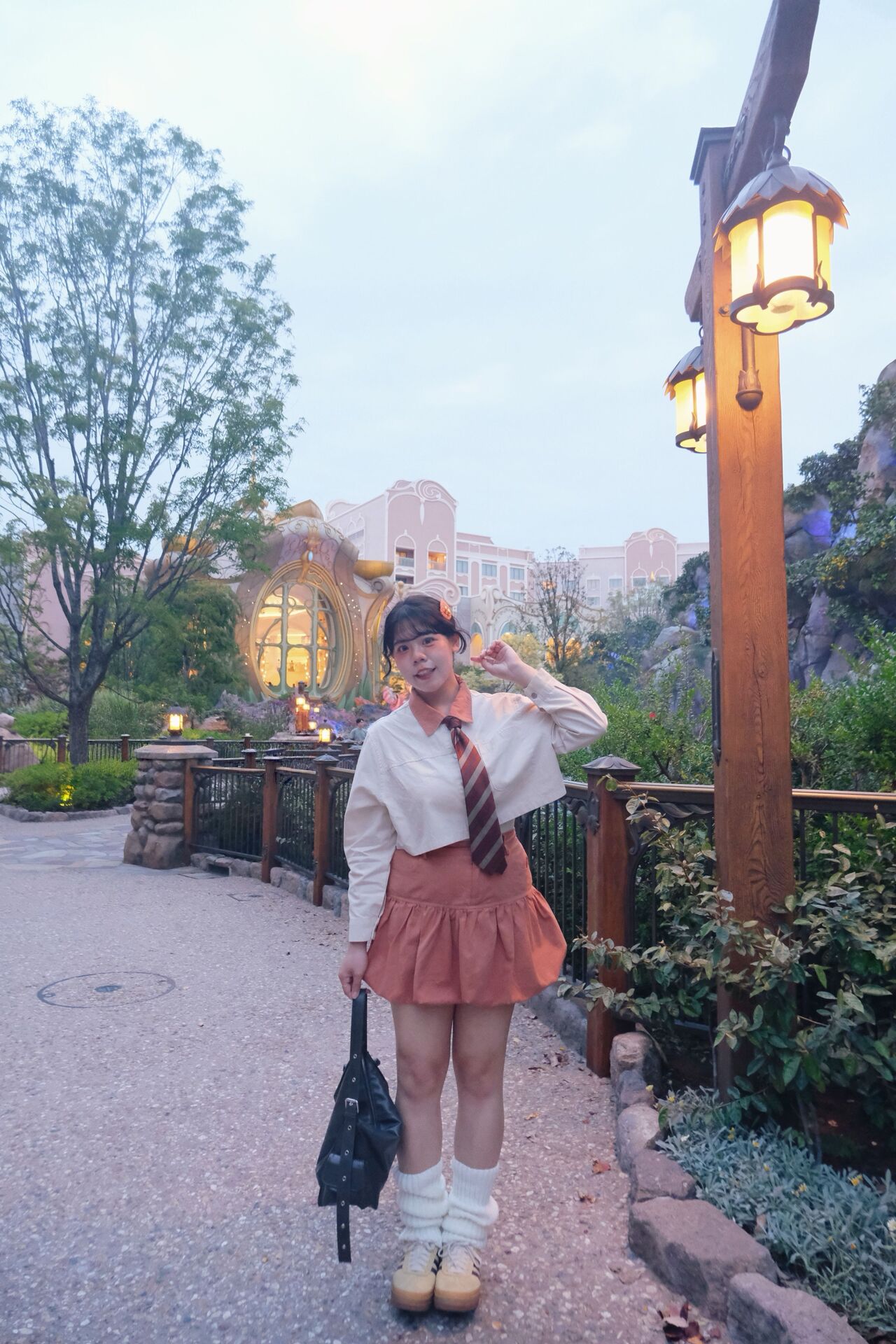 襯衫領口拼色設計小巧思 可愛的南瓜橘配色 讓整體更不單調